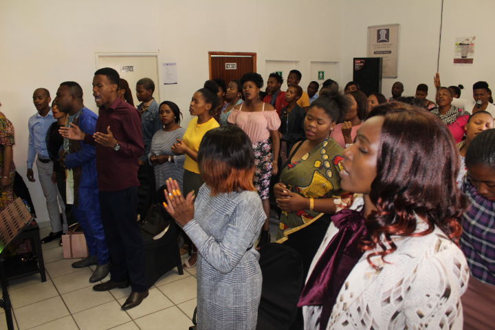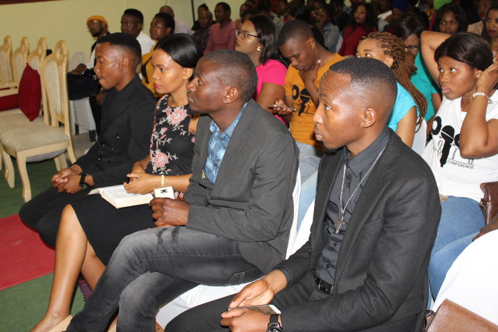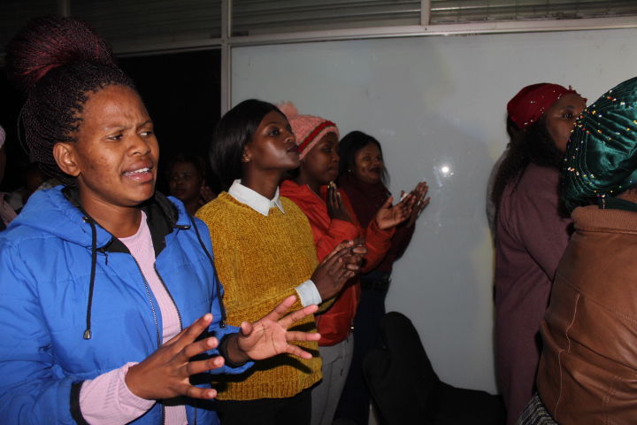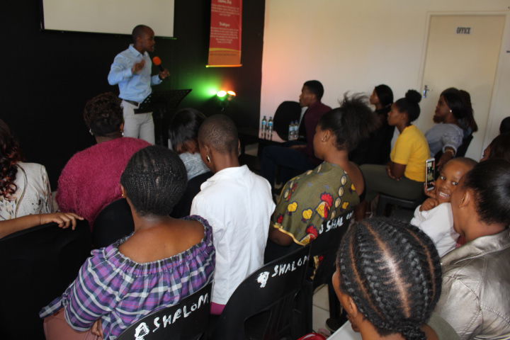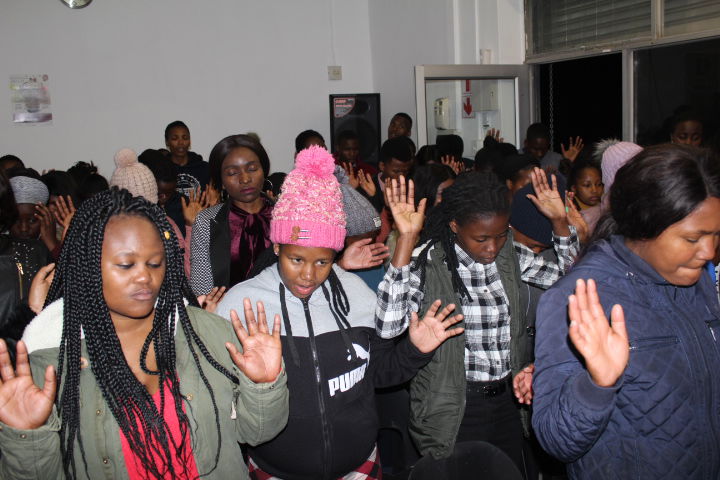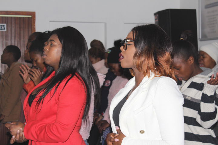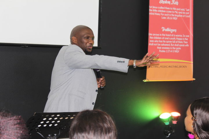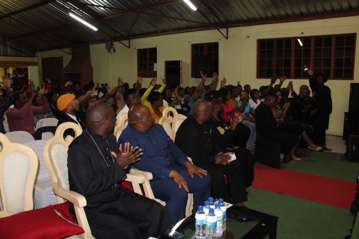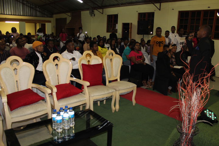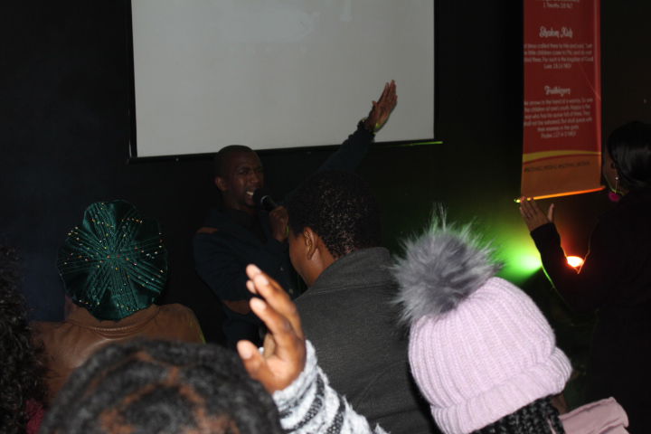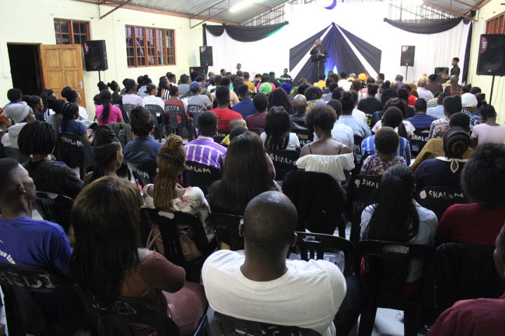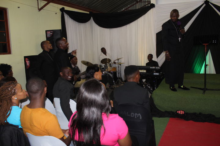 Bishop P.P Hlengane in 2016. Shalom Temple is a vibrant church dominated by energetic young people.